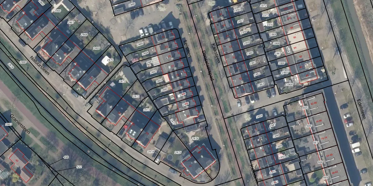 Gebruik de zoekbalk of klik op een perceel voor informatie over de adressen binnen dit perceel.