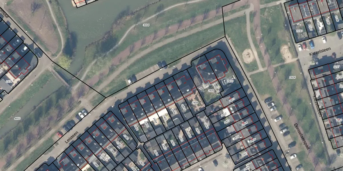 Leisteen 46 is gelegen op kadastraal perceel HTN04B2407. Deze kadastrale aanduiding is uniek en wordt gebruikt door het Kadaster om eigendomsrechten en andere zakelijke rechten vast te leggen. Het perceel maakt onderdeel uit van de kadastrale gemeente Houten.