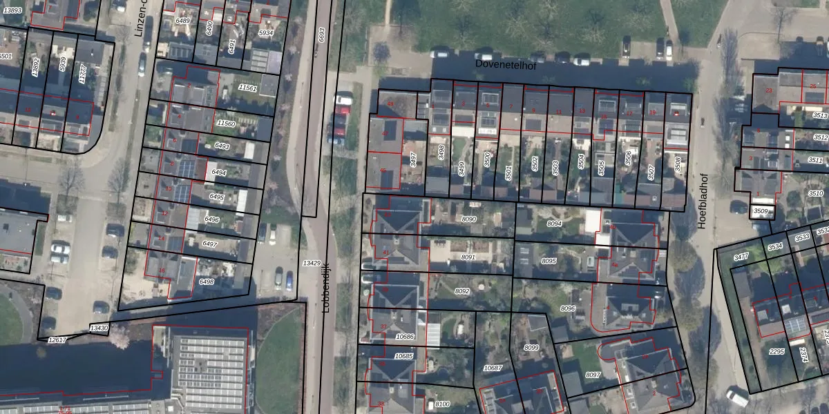 Gebruik de zoekbalk of klik op een perceel voor informatie over de adressen binnen dit perceel.