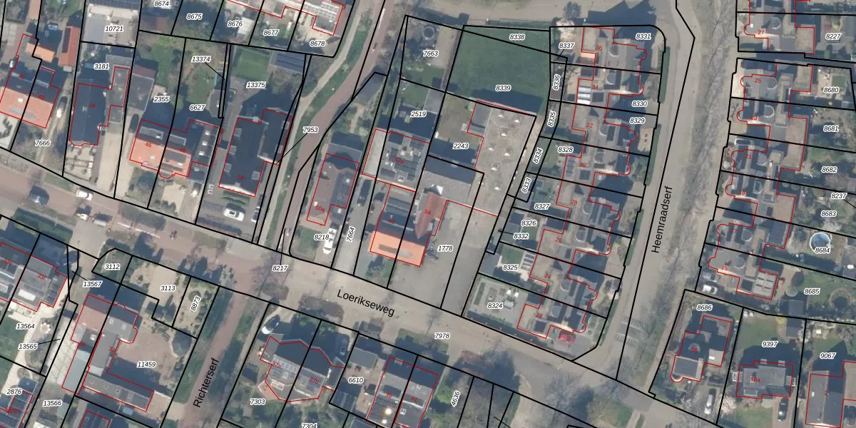 Loerikseweg 54-b is gelegen op kadastraal perceel HTN04A1778. Deze kadastrale aanduiding is uniek en wordt gebruikt door het Kadaster om eigendomsrechten en andere zakelijke rechten vast te leggen. Het perceel maakt onderdeel uit van de kadastrale gemeente Houten.