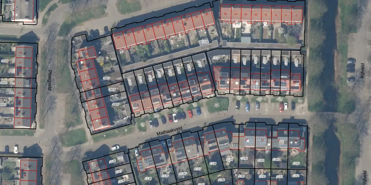 Mathaakveld 12 is gelegen op kadastraal perceel HTN04E1115. Deze kadastrale aanduiding is uniek en wordt gebruikt door het Kadaster om eigendomsrechten en andere zakelijke rechten vast te leggen. Het perceel maakt onderdeel uit van de kadastrale gemeente Houten.