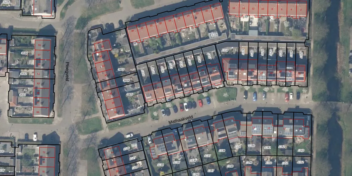 Gebruik de zoekbalk of klik op een perceel voor informatie over de adressen binnen dit perceel.