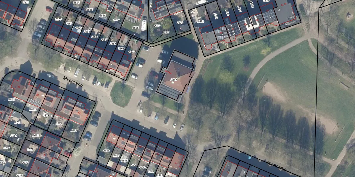 Het perceel waarop Meercamp 54 staat heeft een oppervlakte van 354 m². Dit is een groot perceel. De perceeloppervlakte wordt geregistreerd door het Kadaster. Gedetailleerde informatie over de maten van dit perceel kunt u vinden in het rapport Kadastrale kaart met maatvoering van Meercamp 54.