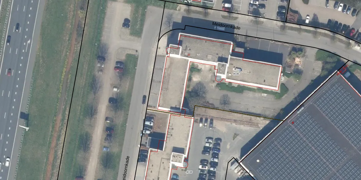 Het perceel waarop Meidoornkade 10-27 staat heeft een oppervlakte van 4043 m². Dit is een zeer groot perceel. De perceeloppervlakte wordt geregistreerd door het Kadaster. Gedetailleerde informatie over de maten van dit perceel kunt u vinden in het rapport Kadastrale kaart met maatvoering van Meidoornkade 10-27.