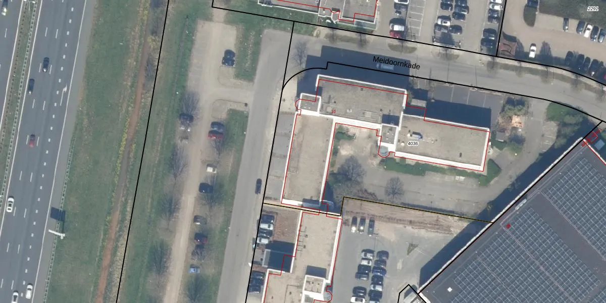 Het perceel waarop Meidoornkade 10-31 staat heeft een oppervlakte van 4043 m². Dit is een zeer groot perceel. De perceeloppervlakte wordt geregistreerd door het Kadaster. Gedetailleerde informatie over de maten van dit perceel kunt u vinden in het rapport Kadastrale kaart met maatvoering van Meidoornkade 10-31.