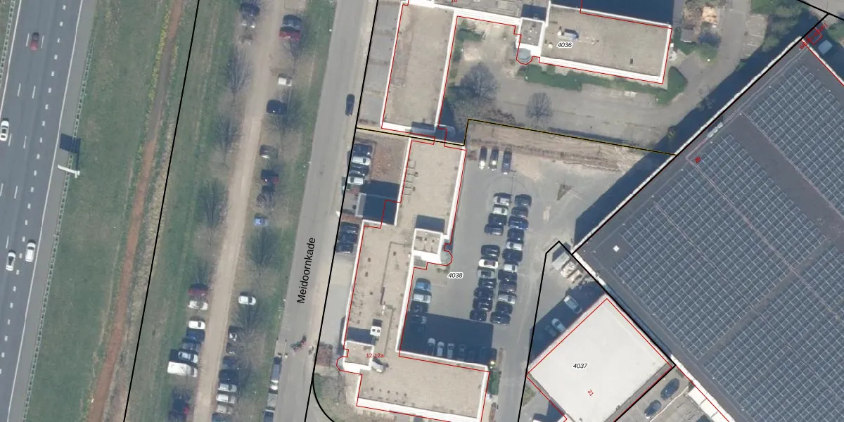 Het perceel waarop Meidoornkade 12 staat heeft een oppervlakte van 4094 m². Dit is een zeer groot perceel. De perceeloppervlakte wordt geregistreerd door het Kadaster. Gedetailleerde informatie over de maten van dit perceel kunt u vinden in het rapport Kadastrale kaart met maatvoering van Meidoornkade 12.