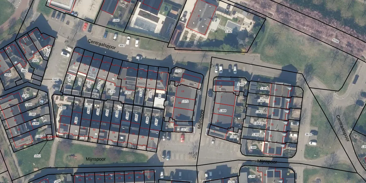 Het perceel waarop Mijnspoor 13 staat heeft een oppervlakte van 314 m². Dit is een groot perceel. De perceeloppervlakte wordt geregistreerd door het Kadaster. Gedetailleerde informatie over de maten van dit perceel kunt u vinden in het rapport Kadastrale kaart met maatvoering van Mijnspoor 13.