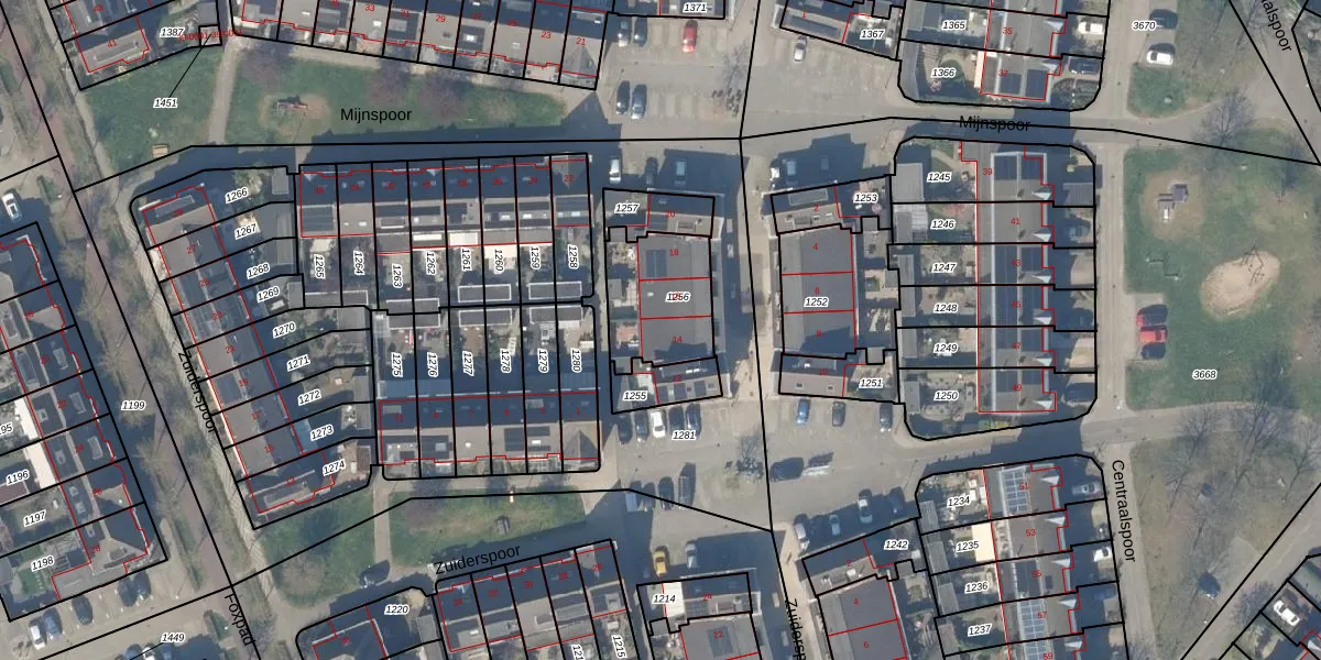 Het perceel waarop Mijnspoor 14 staat heeft een oppervlakte van 310 m². Dit is een groot perceel. De perceeloppervlakte wordt geregistreerd door het Kadaster. Gedetailleerde informatie over de maten van dit perceel kunt u vinden in het rapport Kadastrale kaart met maatvoering van Mijnspoor 14.