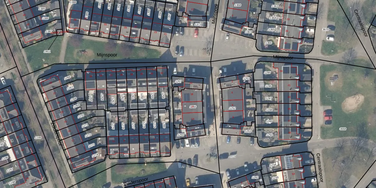 Het perceel waarop Mijnspoor 18 staat heeft een oppervlakte van 310 m². Dit is een groot perceel. De perceeloppervlakte wordt geregistreerd door het Kadaster. Gedetailleerde informatie over de maten van dit perceel kunt u vinden in het rapport Kadastrale kaart met maatvoering van Mijnspoor 18.