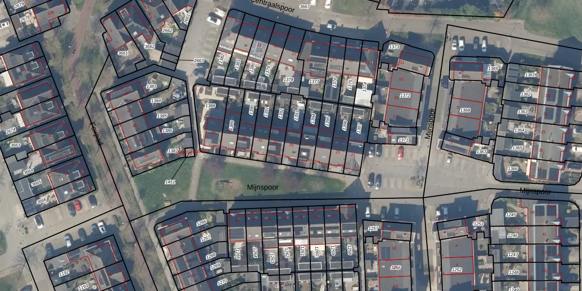 Het perceel waarop Mijnspoor 29 staat heeft een oppervlakte van 130 m². Dit is een middelgroot perceel. De perceeloppervlakte wordt geregistreerd door het Kadaster. Gedetailleerde informatie over de maten van dit perceel kunt u vinden in het rapport Kadastrale kaart met maatvoering van Mijnspoor 29.