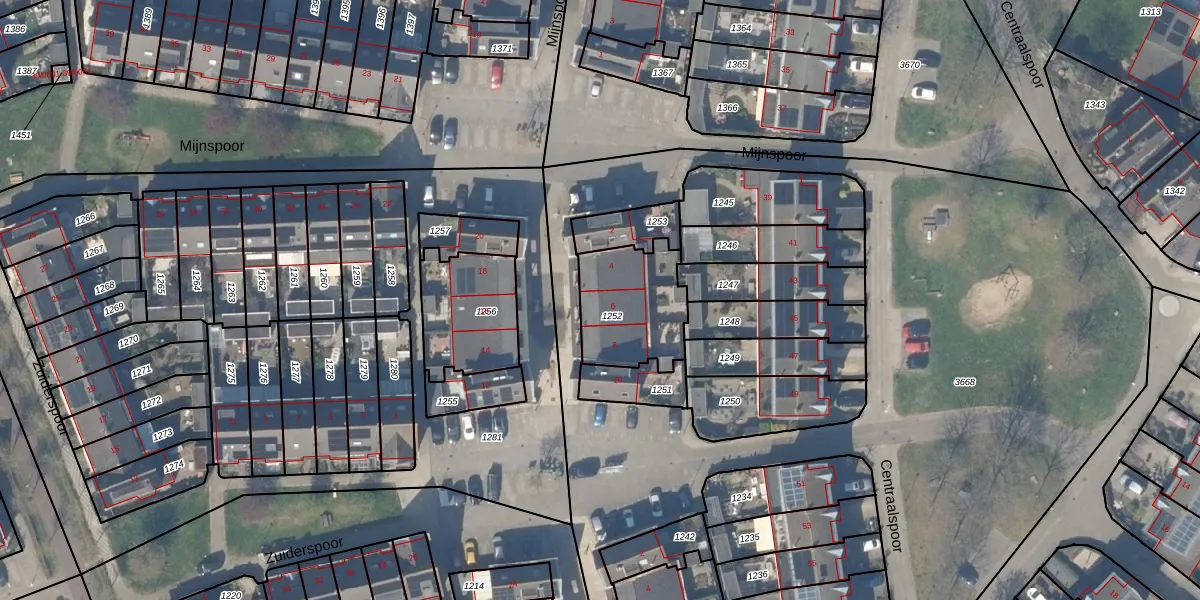 Het perceel waarop Mijnspoor 6 staat heeft een oppervlakte van 337 m². Dit is een groot perceel. De perceeloppervlakte wordt geregistreerd door het Kadaster. Gedetailleerde informatie over de maten van dit perceel kunt u vinden in het rapport Kadastrale kaart met maatvoering van Mijnspoor 6.