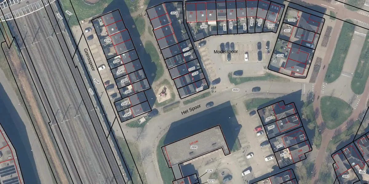 Het perceel waarop Modelspoor 1 staat heeft een oppervlakte van 95 m². Dit is een klein perceel. De perceeloppervlakte wordt geregistreerd door het Kadaster. Gedetailleerde informatie over de maten van dit perceel kunt u vinden in het rapport Kadastrale kaart met maatvoering van Modelspoor 1.