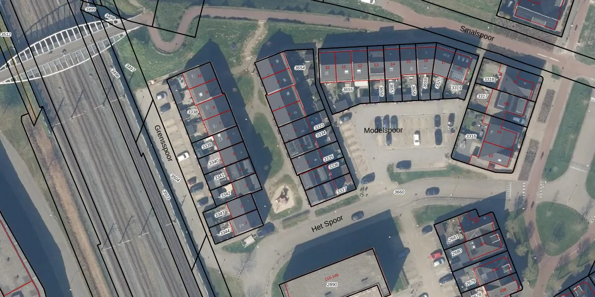 Het perceel waarop Modelspoor 4 staat heeft een oppervlakte van 97 m². Dit is een klein perceel. De perceeloppervlakte wordt geregistreerd door het Kadaster. Gedetailleerde informatie over de maten van dit perceel kunt u vinden in het rapport Kadastrale kaart met maatvoering van Modelspoor 4.