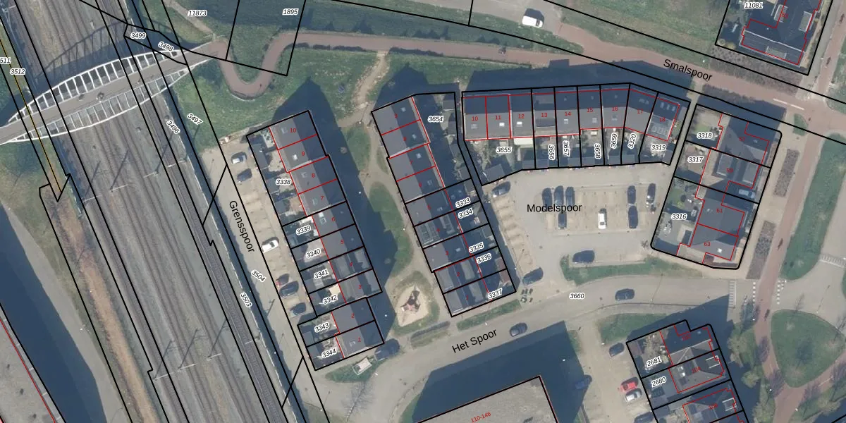 Modelspoor 5 is gelegen op kadastraal perceel HTN04B3333. Deze kadastrale aanduiding is uniek en wordt gebruikt door het Kadaster om eigendomsrechten en andere zakelijke rechten vast te leggen. Het perceel maakt onderdeel uit van de kadastrale gemeente Houten.