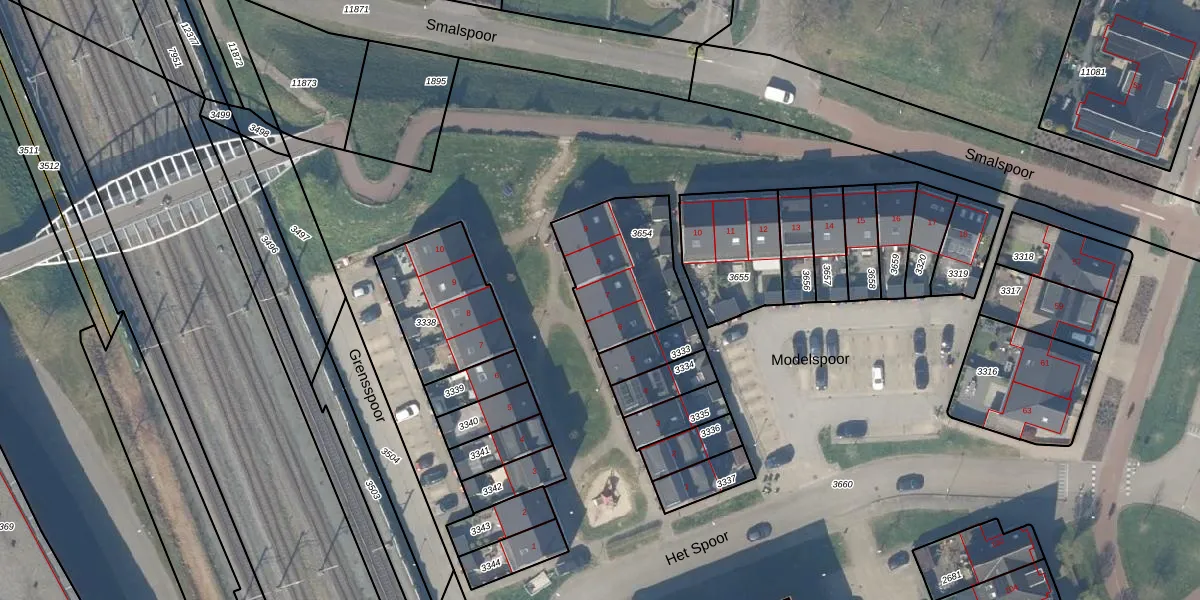 Modelspoor 7 is gelegen op kadastraal perceel HTN04B3654. Deze kadastrale aanduiding is uniek en wordt gebruikt door het Kadaster om eigendomsrechten en andere zakelijke rechten vast te leggen. Het perceel maakt onderdeel uit van de kadastrale gemeente Houten.