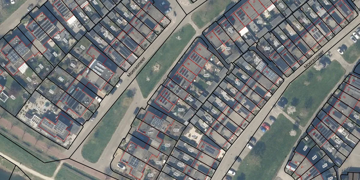 Moerasmeer 36 is gelegen op kadastraal perceel HTN04B897. Deze kadastrale aanduiding is uniek en wordt gebruikt door het Kadaster om eigendomsrechten en andere zakelijke rechten vast te leggen. Het perceel maakt onderdeel uit van de kadastrale gemeente Houten.