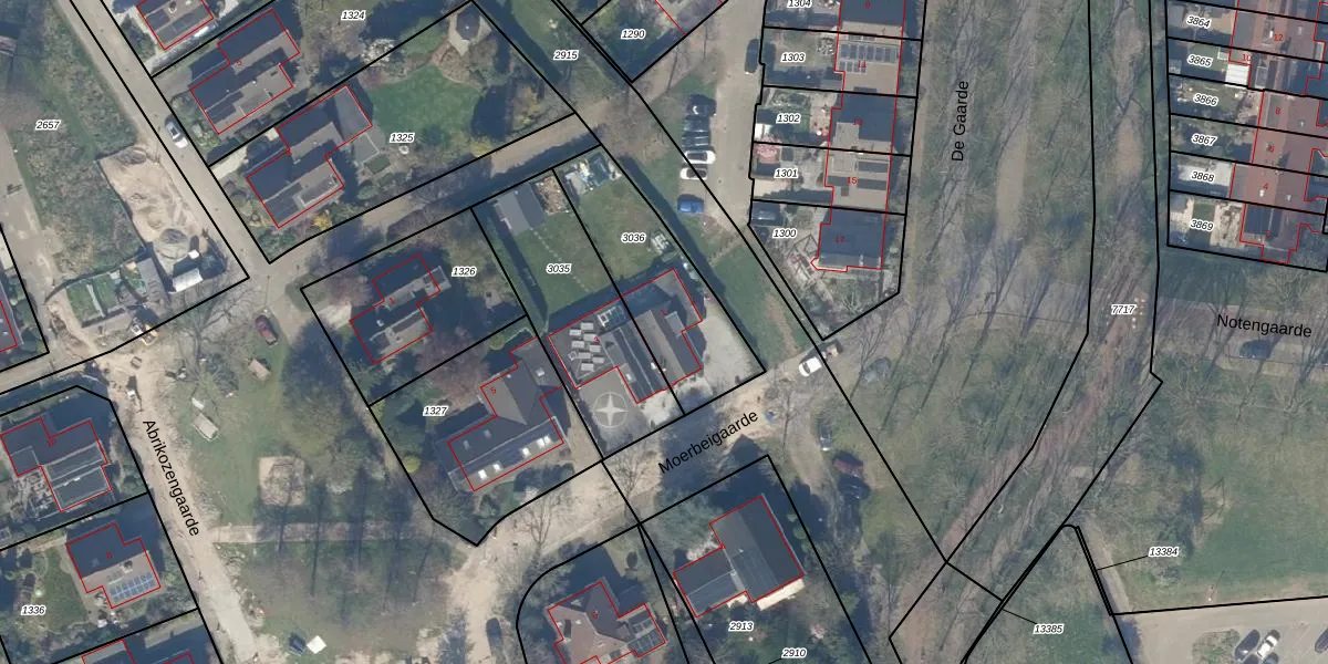 Het perceel waarop Moerbeigaarde 1 staat heeft een oppervlakte van 485 m². Dit is een groot perceel. De perceeloppervlakte wordt geregistreerd door het Kadaster. Gedetailleerde informatie over de maten van dit perceel kunt u vinden in het rapport Kadastrale kaart met maatvoering van Moerbeigaarde 1.