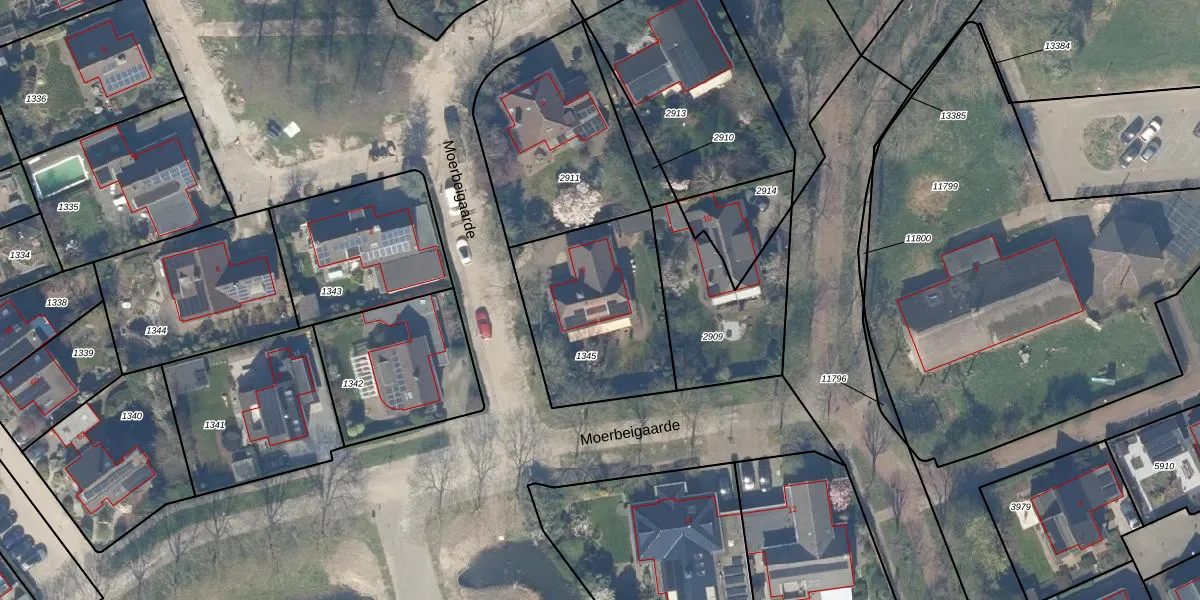 Het perceel waarop Moerbeigaarde 8 staat heeft een oppervlakte van 666 m². Dit is een groot perceel. De perceeloppervlakte wordt geregistreerd door het Kadaster. Gedetailleerde informatie over de maten van dit perceel kunt u vinden in het rapport Kadastrale kaart met maatvoering van Moerbeigaarde 8.