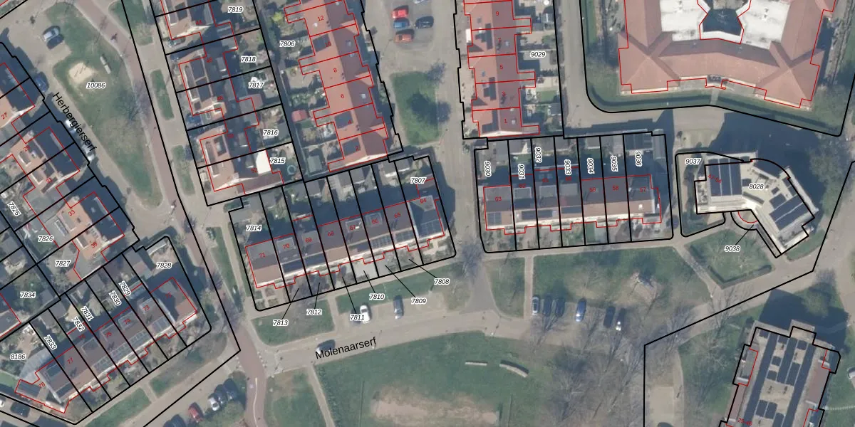 Molenaarserf 64 is gelegen op kadastraal perceel HTN04A7807. Deze kadastrale aanduiding is uniek en wordt gebruikt door het Kadaster om eigendomsrechten en andere zakelijke rechten vast te leggen. Het perceel maakt onderdeel uit van de kadastrale gemeente Houten.