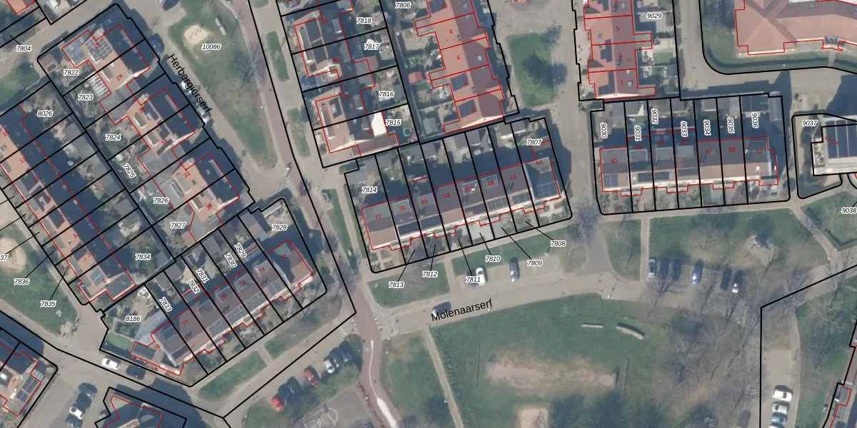 Molenaarserf 69 is gelegen op kadastraal perceel HTN04A7812. Deze kadastrale aanduiding is uniek en wordt gebruikt door het Kadaster om eigendomsrechten en andere zakelijke rechten vast te leggen. Het perceel maakt onderdeel uit van de kadastrale gemeente Houten.