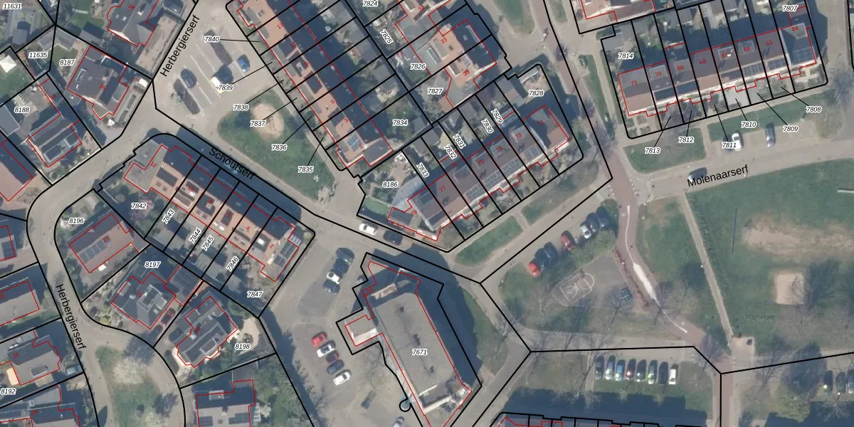 Molenaarserf 78 is gelegen op kadastraal perceel HTN04A8186. Deze kadastrale aanduiding is uniek en wordt gebruikt door het Kadaster om eigendomsrechten en andere zakelijke rechten vast te leggen. Het perceel maakt onderdeel uit van de kadastrale gemeente Houten.