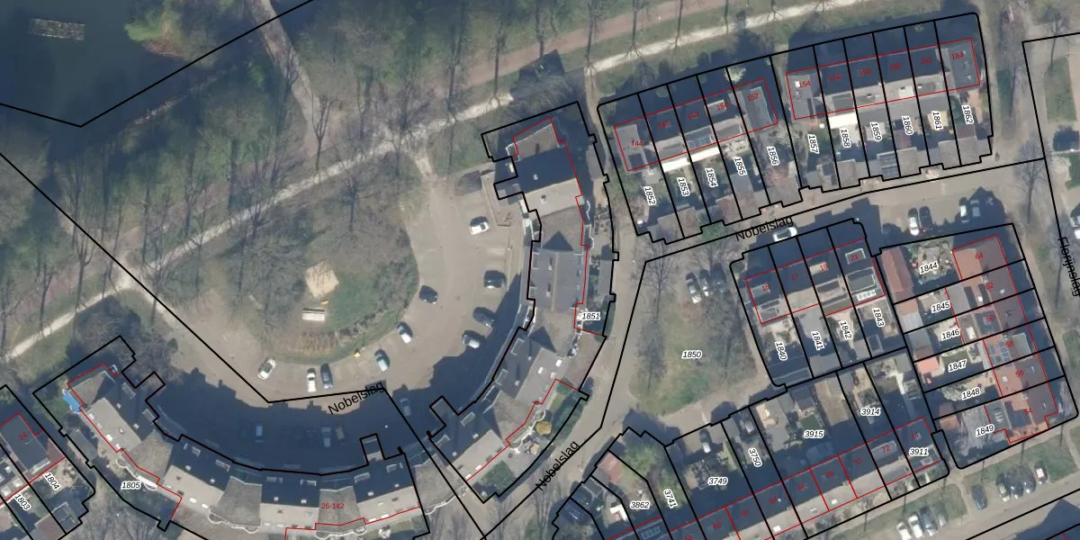 Het perceel waarop Nobelslag 108 staat heeft een oppervlakte van 1182 m². Dit is een zeer groot perceel. De perceeloppervlakte wordt geregistreerd door het Kadaster. Gedetailleerde informatie over de maten van dit perceel kunt u vinden in het rapport Kadastrale kaart met maatvoering van Nobelslag 108.