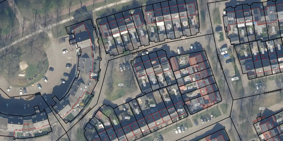 Het perceel waarop Nobelslag 15 staat heeft een oppervlakte van 202 m². Dit is een middelgroot perceel. De perceeloppervlakte wordt geregistreerd door het Kadaster. Gedetailleerde informatie over de maten van dit perceel kunt u vinden in het rapport Kadastrale kaart met maatvoering van Nobelslag 15.