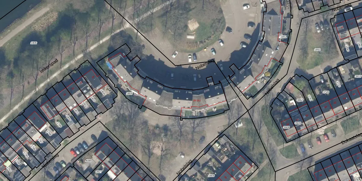 Het perceel waarop Nobelslag 40 staat heeft een oppervlakte van 1219 m². Dit is een zeer groot perceel. De perceeloppervlakte wordt geregistreerd door het Kadaster. Gedetailleerde informatie over de maten van dit perceel kunt u vinden in het rapport Kadastrale kaart met maatvoering van Nobelslag 40.