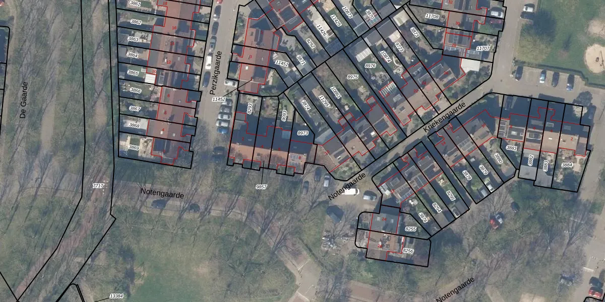 Het perceel waarop Notengaarde 8 staat heeft een oppervlakte van 138 m². Dit is een middelgroot perceel. De perceeloppervlakte wordt geregistreerd door het Kadaster. Gedetailleerde informatie over de maten van dit perceel kunt u vinden in het rapport Kadastrale kaart met maatvoering van Notengaarde 8.