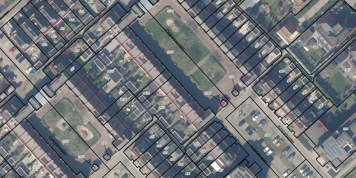 Het perceel waarop Oceaanwater 25 staat heeft een oppervlakte van 1177 m². Dit is een zeer groot perceel. De perceeloppervlakte wordt geregistreerd door het Kadaster. Gedetailleerde informatie over de maten van dit perceel kunt u vinden in het rapport Kadastrale kaart met maatvoering van Oceaanwater 25.