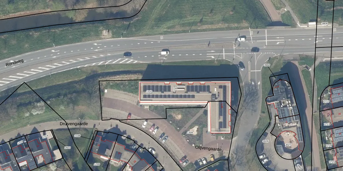 Het perceel waarop Olijvengaarde 26 staat heeft een oppervlakte van 1565 m². Dit is een zeer groot perceel. De perceeloppervlakte wordt geregistreerd door het Kadaster. Gedetailleerde informatie over de maten van dit perceel kunt u vinden in het rapport Kadastrale kaart met maatvoering van Olijvengaarde 26.