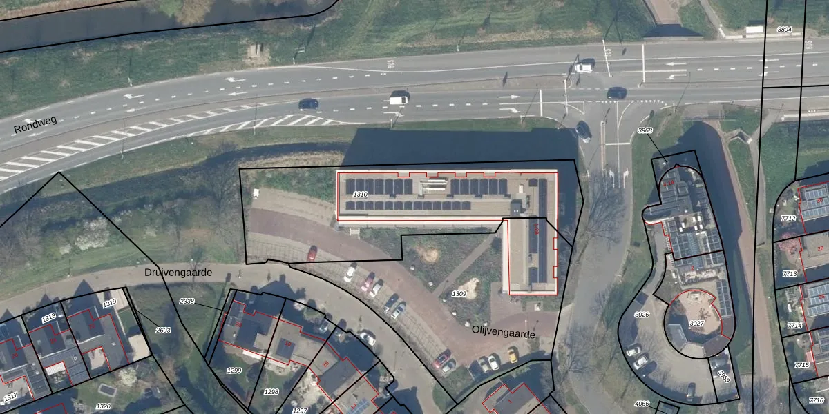 Het perceel waarop Olijvengaarde 8 staat heeft een oppervlakte van 1565 m². Dit is een zeer groot perceel. De perceeloppervlakte wordt geregistreerd door het Kadaster. Gedetailleerde informatie over de maten van dit perceel kunt u vinden in het rapport Kadastrale kaart met maatvoering van Olijvengaarde 8.
