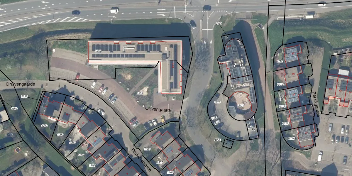Het perceel waarop Olijvengaarde 9 staat heeft een oppervlakte van 1575 m². Dit is een zeer groot perceel. De perceeloppervlakte wordt geregistreerd door het Kadaster. Gedetailleerde informatie over de maten van dit perceel kunt u vinden in het rapport Kadastrale kaart met maatvoering van Olijvengaarde 9.