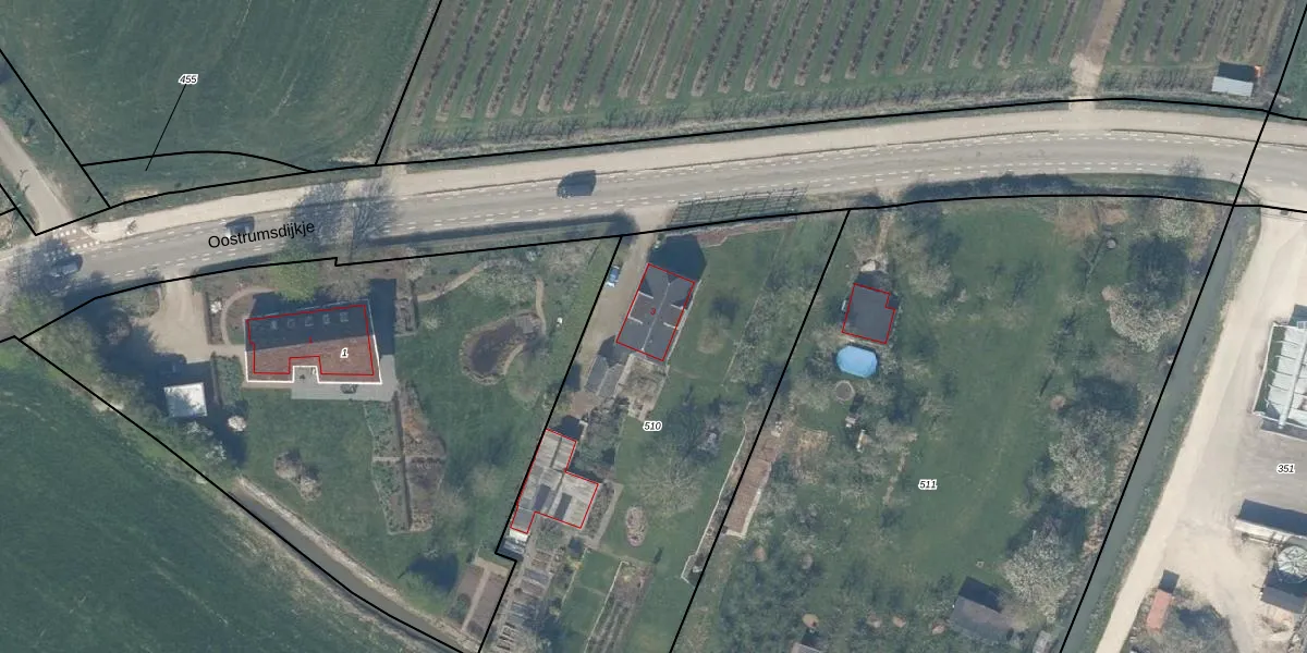 Oostrumsdijkje 3 is gelegen op kadastraal perceel HTN04L510. Deze kadastrale aanduiding is uniek en wordt gebruikt door het Kadaster om eigendomsrechten en andere zakelijke rechten vast te leggen. Het perceel maakt onderdeel uit van de kadastrale gemeente Houten.