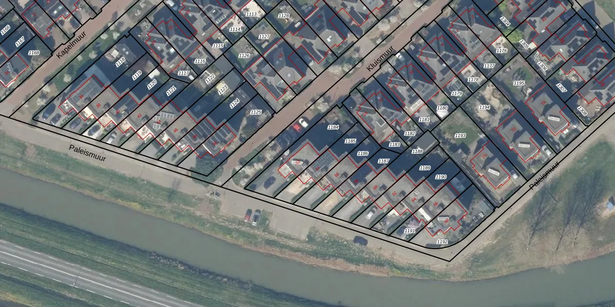 Het perceel waarop Paleismuur 52 staat heeft een oppervlakte van 344 m². Dit is een groot perceel. De perceeloppervlakte wordt geregistreerd door het Kadaster. Gedetailleerde informatie over de maten van dit perceel kunt u vinden in het rapport Kadastrale kaart met maatvoering van Paleismuur 52.