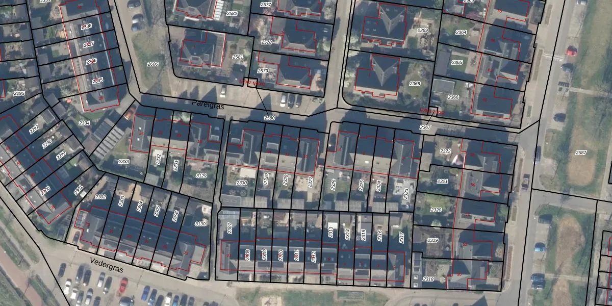 Gebruik de zoekbalk of klik op een perceel voor informatie over de adressen binnen dit perceel.