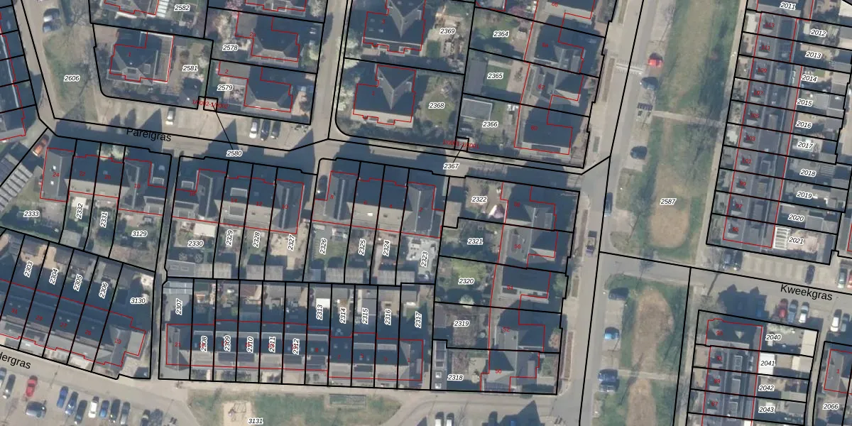 Gebruik de zoekbalk of klik op een perceel voor informatie over de adressen binnen dit perceel.
