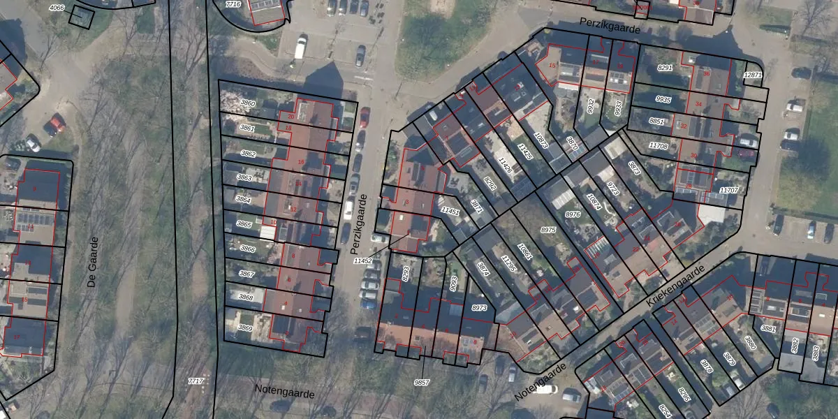 Perzikgaarde 3 is gelegen op kadastraal perceel HTN04A11451. Deze kadastrale aanduiding is uniek en wordt gebruikt door het Kadaster om eigendomsrechten en andere zakelijke rechten vast te leggen. Het perceel maakt onderdeel uit van de kadastrale gemeente Houten.