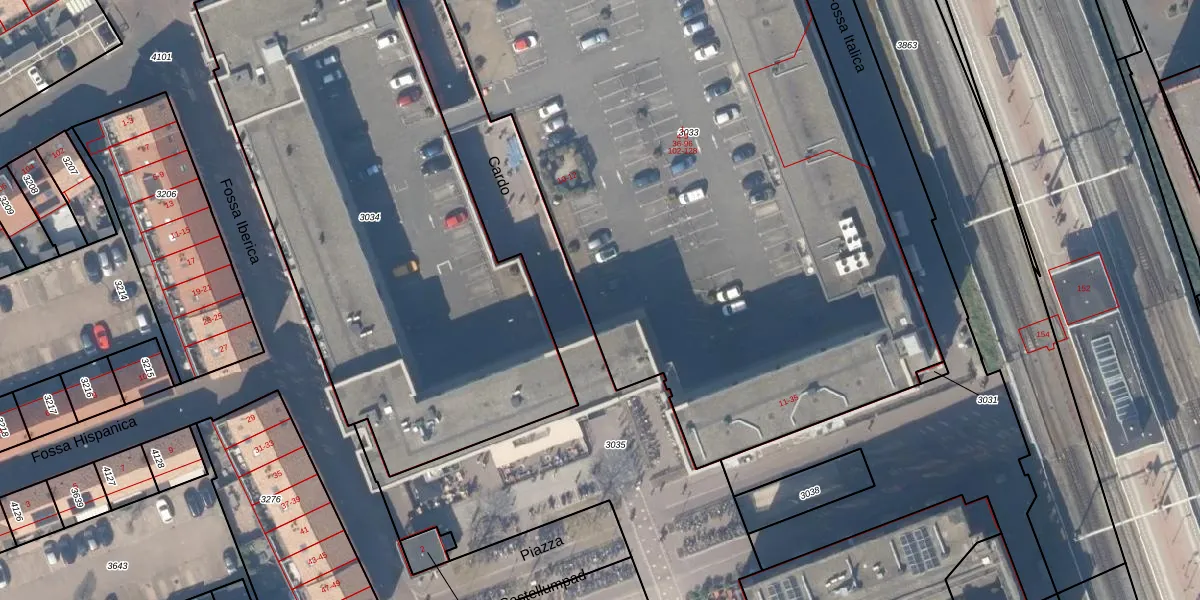 Het perceel waarop Piazza 10 staat heeft een oppervlakte van 5365 m². Dit is een zeer groot perceel. De perceeloppervlakte wordt geregistreerd door het Kadaster. Gedetailleerde informatie over de maten van dit perceel kunt u vinden in het rapport Kadastrale kaart met maatvoering van Piazza 10.