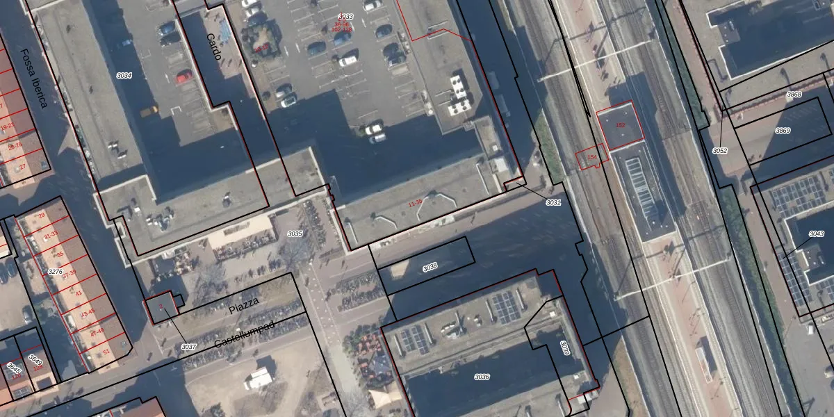 Het perceel waarop Piazza 13 staat heeft een oppervlakte van 5365 m². Dit is een zeer groot perceel. De perceeloppervlakte wordt geregistreerd door het Kadaster. Gedetailleerde informatie over de maten van dit perceel kunt u vinden in het rapport Kadastrale kaart met maatvoering van Piazza 13.