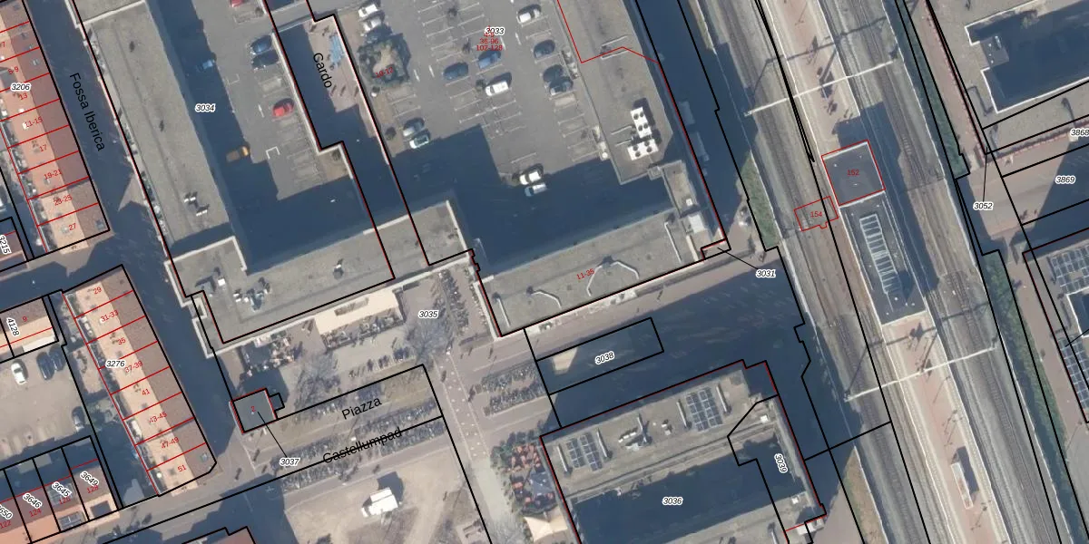 Het perceel waarop Piazza 22 staat heeft een oppervlakte van 5365 m². Dit is een zeer groot perceel. De perceeloppervlakte wordt geregistreerd door het Kadaster. Gedetailleerde informatie over de maten van dit perceel kunt u vinden in het rapport Kadastrale kaart met maatvoering van Piazza 22.
