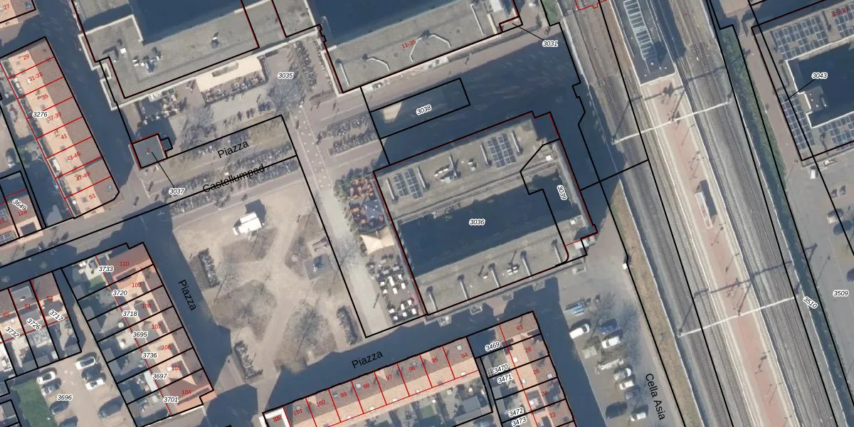 Het perceel waarop Piazza 40 staat heeft een oppervlakte van 1322 m². Dit is een zeer groot perceel. De perceeloppervlakte wordt geregistreerd door het Kadaster. Gedetailleerde informatie over de maten van dit perceel kunt u vinden in het rapport Kadastrale kaart met maatvoering van Piazza 40.