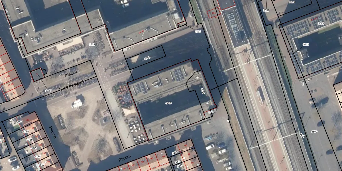 Het perceel waarop Piazza 48 staat heeft een oppervlakte van 1322 m². Dit is een zeer groot perceel. De perceeloppervlakte wordt geregistreerd door het Kadaster. Gedetailleerde informatie over de maten van dit perceel kunt u vinden in het rapport Kadastrale kaart met maatvoering van Piazza 48.