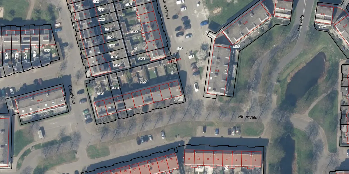 Ploegveld 1 is gelegen op kadastraal perceel HTN04E3957. Deze kadastrale aanduiding is uniek en wordt gebruikt door het Kadaster om eigendomsrechten en andere zakelijke rechten vast te leggen. Het perceel maakt onderdeel uit van de kadastrale gemeente Houten.