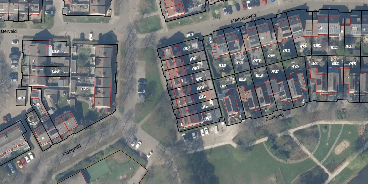 Gebruik de zoekbalk of klik op een perceel voor informatie over de adressen binnen dit perceel.