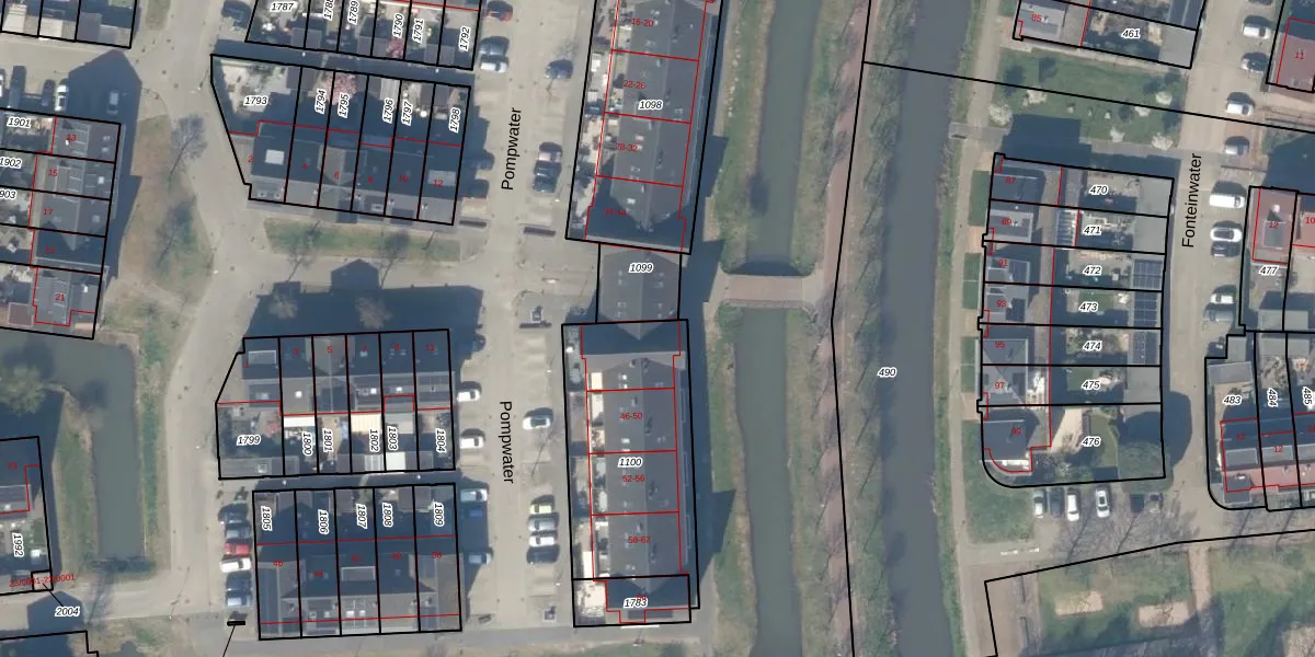 Het perceel waarop Pompwater 40 staat heeft een oppervlakte van 747 m². Dit is een groot perceel. De perceeloppervlakte wordt geregistreerd door het Kadaster. Gedetailleerde informatie over de maten van dit perceel kunt u vinden in het rapport Kadastrale kaart met maatvoering van Pompwater 40.
