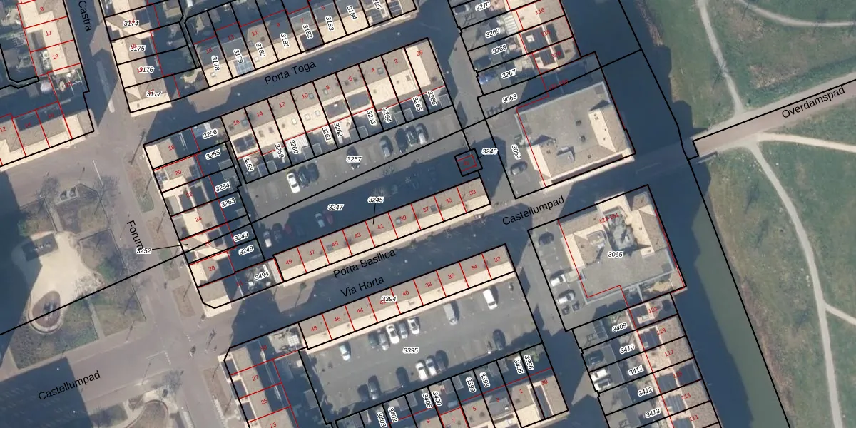 Het perceel waarop Porta Basilica 37 staat heeft een oppervlakte van 345 m². Dit is een groot perceel. De perceeloppervlakte wordt geregistreerd door het Kadaster. Gedetailleerde informatie over de maten van dit perceel kunt u vinden in het rapport Kadastrale kaart met maatvoering van Porta Basilica 37.