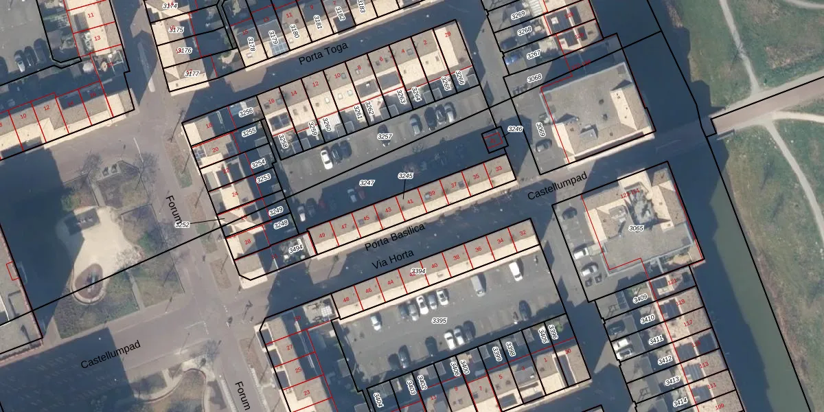 Het perceel waarop Porta Basilica 41 staat heeft een oppervlakte van 345 m². Dit is een groot perceel. De perceeloppervlakte wordt geregistreerd door het Kadaster. Gedetailleerde informatie over de maten van dit perceel kunt u vinden in het rapport Kadastrale kaart met maatvoering van Porta Basilica 41.