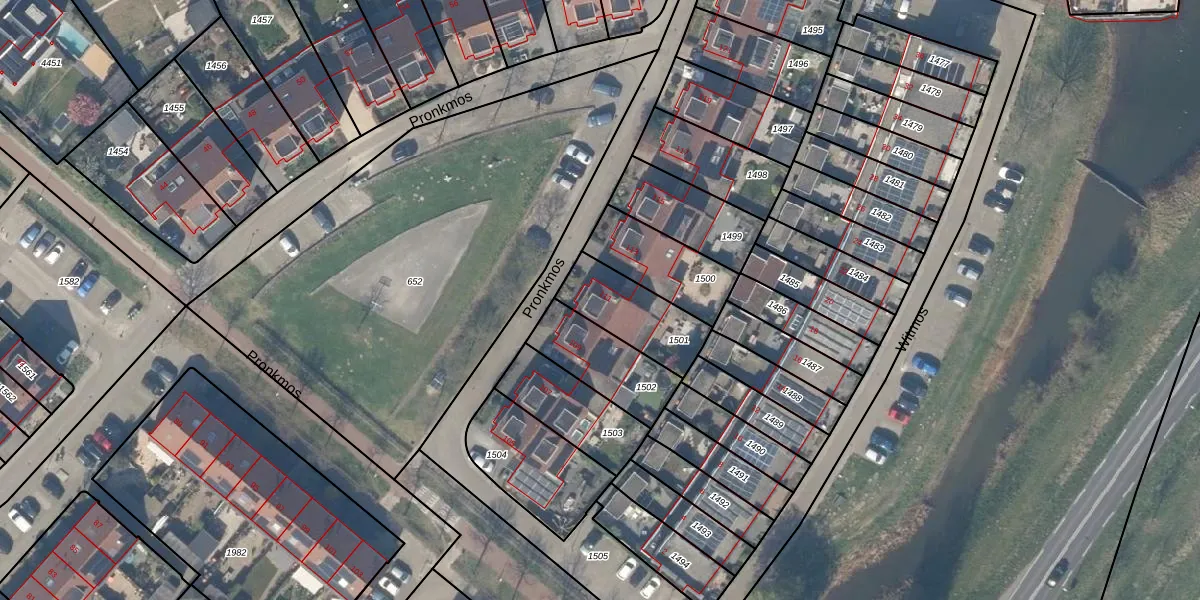 Pronkmos 111 is gelegen op kadastraal perceel HTN04B1501. Deze kadastrale aanduiding is uniek en wordt gebruikt door het Kadaster om eigendomsrechten en andere zakelijke rechten vast te leggen. Het perceel maakt onderdeel uit van de kadastrale gemeente Houten.
