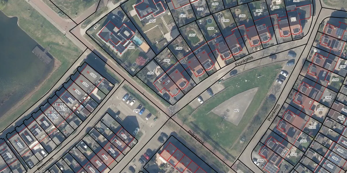 Pronkmos 44 is gelegen op kadastraal perceel HTN04B1454. Deze kadastrale aanduiding is uniek en wordt gebruikt door het Kadaster om eigendomsrechten en andere zakelijke rechten vast te leggen. Het perceel maakt onderdeel uit van de kadastrale gemeente Houten.